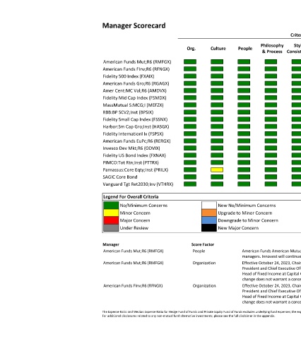 People New No/Minimum Concerns Upgrade to Minor Concern Downgrade to Minor Concern New Major Concern The Expense Ratio and Median Expense Ratio for Hedge Fund of Funds and Private Equity Fund of Funds excludes underlying fund expenses; the expenses shown are only at the Fund of Funds level.