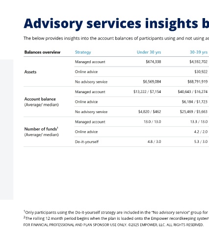 The below provides insights into the account balances of participants using and not using advisory services. All participants with a balance are included.