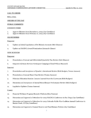 DEFERRED COMPENSATION ADVISORY COMMITTEE Agenda for May 22, 2025