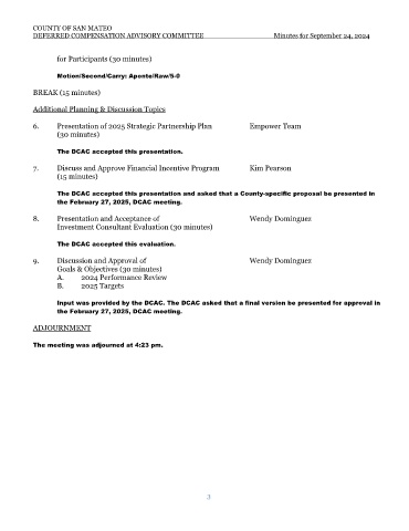 DEFERRED COMPENSATION ADVISORY COMMITTEE Minutes for September 24, 2024