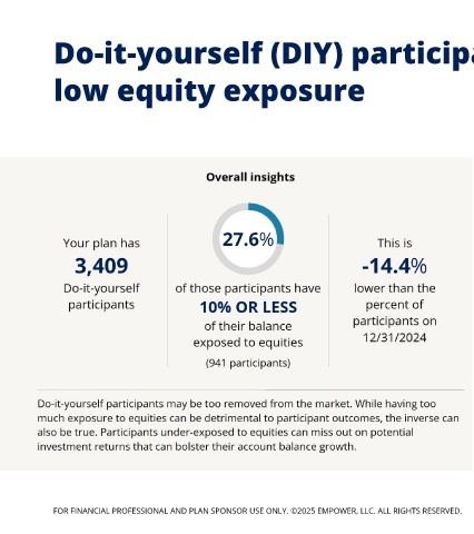 Do-it-yourself (DIY) participants with As of 9/30/2025 low equity exposure FOR FINANCIAL PROFESSIONAL AND PLAN SPONSOR USE ONLY. ©2025 EMPOWER, LLC. ALL RIGHTS RESERVED. 776970-01 San Mateo County Deferred Compensation Plan 32