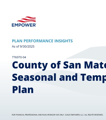 PLAN PERFORMANCE INSIGHTS As of 9/30/2025 776970-04 County of San Mateo Part Time, Seasonal and Temporary Retirement Plan FOR FINANCIAL PROFESSIONAL AND PLAN SPONSOR USE ONLY. ©2025 EMPOWER, LLC. ALL RIGHTS RESERVED.