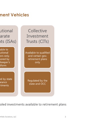 All investment vehicles above are daily valued pooled investments available to retirement plans