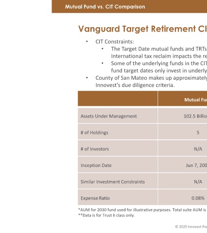 • Some of the underlying funds in the CIT target dates are CIT vehicles. The mutual