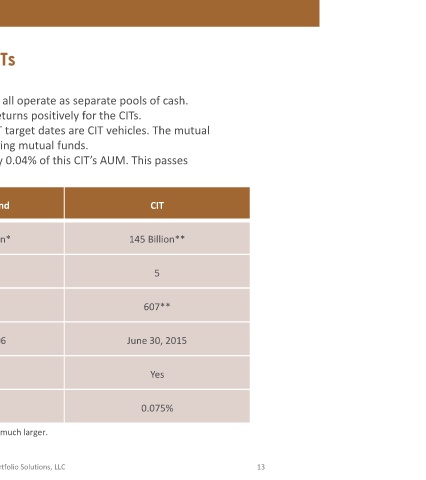 • Some of the underlying funds in the CIT target dates are CIT vehicles. The mutual