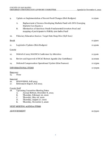 DEFERRED COMPENSATION ADVISORY COMMITTEE Agenda for November 6, 2025