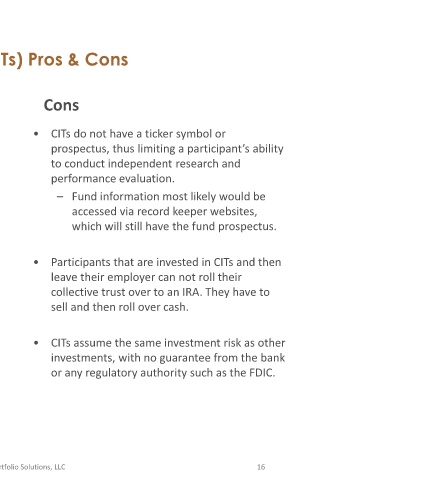 • CITs provide plan fiduciaries and participants • CITs do not have a ticker symbol or