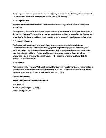 If any employee has any question about their eligibility or entry into the drawing, please contact the