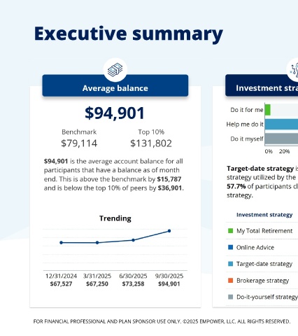 Executive summary As of 9/30/2025 FOR FINANCIAL PROFESSIONAL AND PLAN SPONSOR USE ONLY. ©2025 EMPOWER, LLC. ALL RIGHTS RESERVED. 776970-01 San Mateo County Deferred Compensation Plan 5