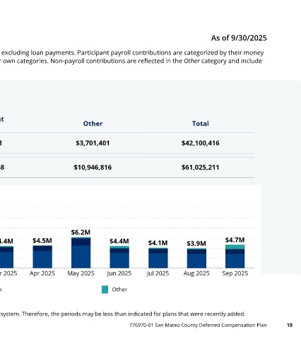 type. Any employer contributions and any non-payroll contributions are separated into their own categories. Non-payroll contributions are reflected in the Other category and include