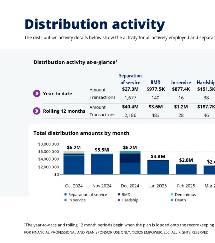 The distribution activity details below show the activity for all actively employed and separated from service participants