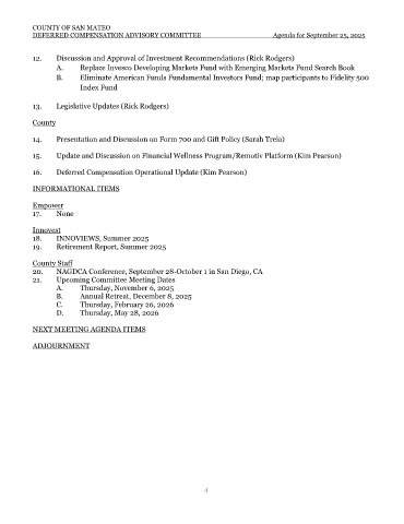 DEFERRED COMPENSATION ADVISORY COMMITTEE Agenda for September 25, 2025