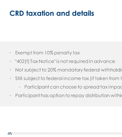 • Participant can choose to spread tax impact over 3 years in equal amounts