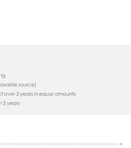 • Participant can choose to spread tax impact over 3 years in equal amounts