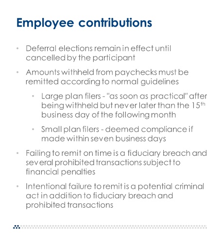 • Failing to remit on time is a fiduciary breach and
