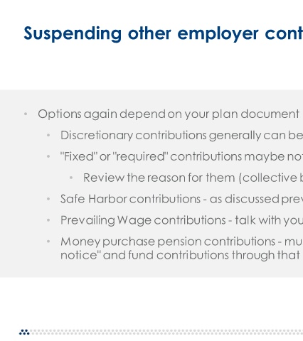 • Money purchase pension contributions - must provide participants with 30 days "204(h)