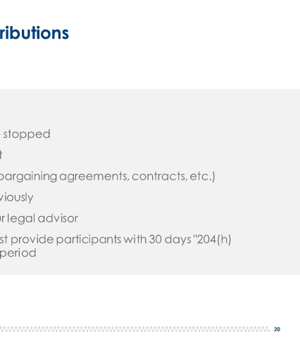 • Money purchase pension contributions - must provide participants with 30 days "204(h)
