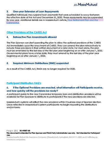 for one year. Additional details are in MassMutual’s article, Your Retirement Plan and the