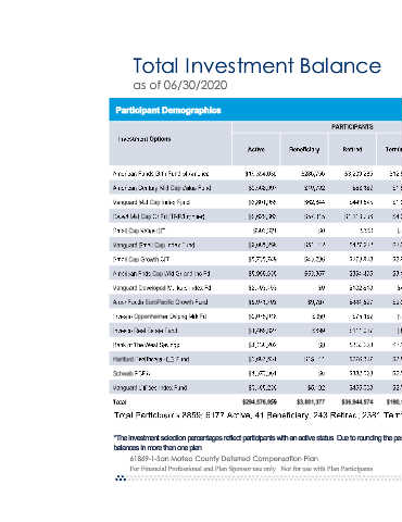 as of 06/30/2020 Participant Demographics balances in more than one plan. 61869-1-San Mateo County Deferred Compensation Plan For Financial Professional and Plan Sponsor use only.