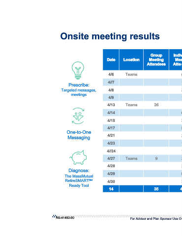Prescribe: Targeted messages, meetings One-to-One Messaging Diagnose: The MassMutual RetireSMART SM Ready Tool RS-41492-00