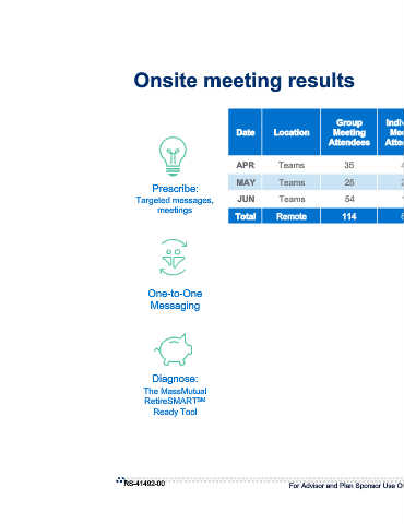 Prescribe: Targeted messages, meetings One-to-One Messaging Diagnose: The MassMutual RetireSMART SM Ready Tool RS-41492-00
