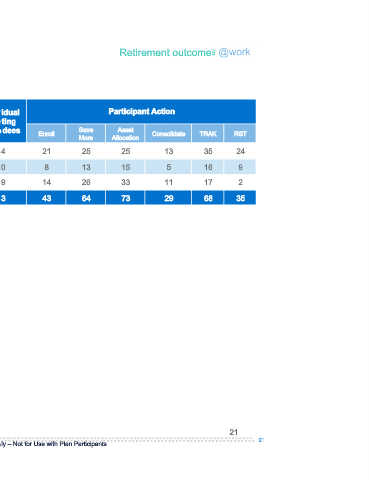 Retirement outcomes Participant Action Consolidate 5 3 3 1 5 7 1 1 1 29