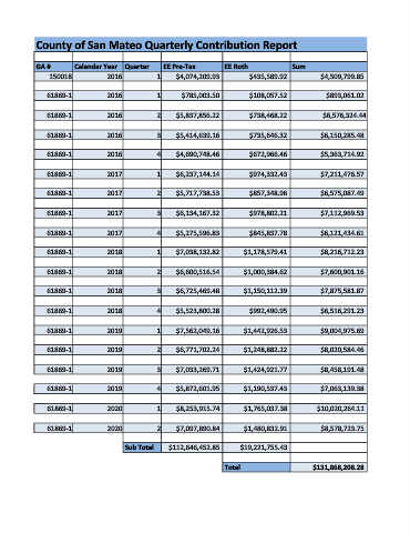 GA # Calendar Year Quarter EE Pre-Tax EE Roth Sum