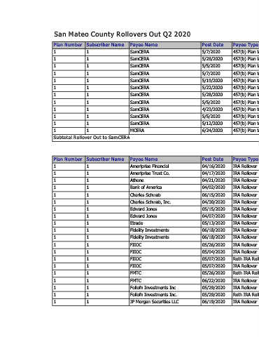 1 1 SamCERA 5/22/2020 457(b) Plan to Plan Transfer $9,906.42 $18,295.28