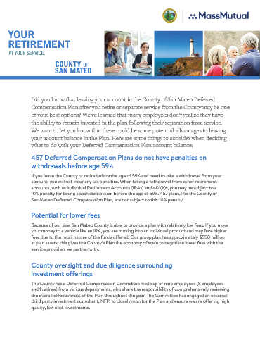 Because of our size, San Mateo County is able to provide a plan with relatively low fees. If you move