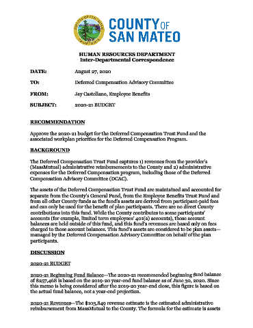 TO: Deferred Compensation Advisory Committee