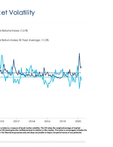 as of 06/30/2020 Source of chart data: Bloomberg, 06/30/2020. The Chicago Board Options Exchange S&P 500 Volatility Index is a measure of stock market volatility. The VIX takes the weighted average of implied confidence level in relation to the market. The index is unmanaged, includes the volatility for the S&P 500 (SPX) and measures the volatility of the market. Dividing the S&P 500 by the VIX (ratio) gives the only and does not predict or depict the performance of any particular reinvestment of divi