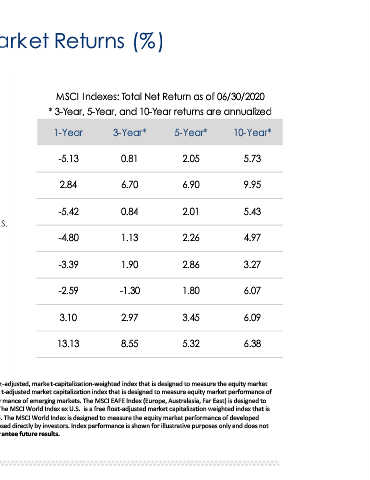 MSCI Indexes: Total Net Return as of 06/30/2020