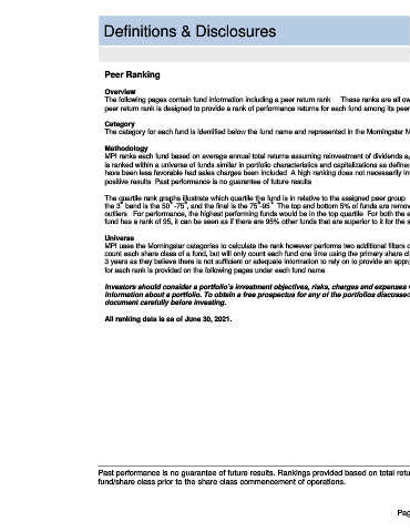 The following pages contain fund information including a peer return rank. These ranks are all owned and calculated by MPI Stylus. It is based on a one, three and 5 year annualized period. The