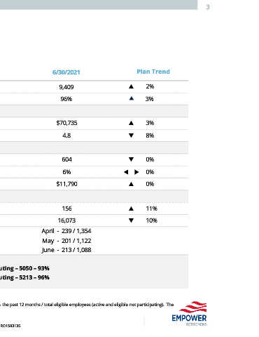 The participation rate calculation is based upon eligible participants with a salary deferral contribution in the past 12 months / total eligible employees (active and eligible not participating). The