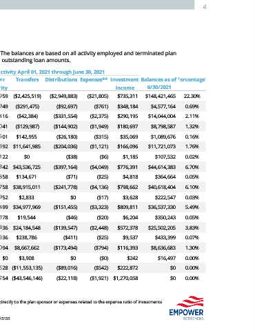 The below shows the plan level activity for the current time period. The balances are based on all activity employed and terminated plan
