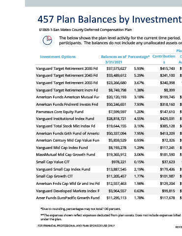 Investment Options Balances as of Percentage* Contribution Other Transfers Distributions Expenses** Investment Balances as of Percentage*