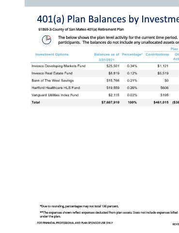 401(a) Plan Balances by Investment