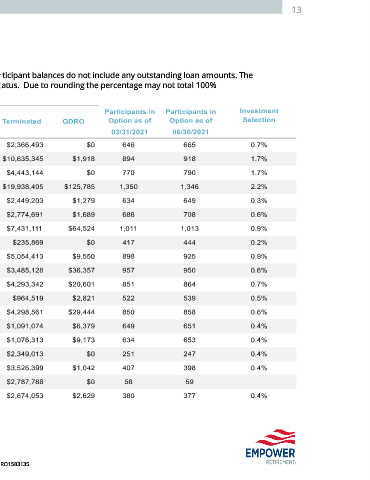The balances reflected are based on plan participant status. The participant balances do not include any outstanding loan amounts. The