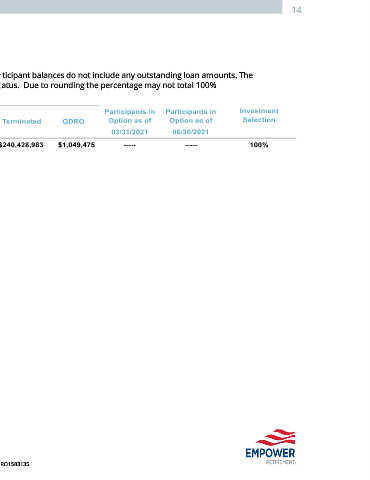 The balances reflected are based on plan participant status. The participant balances do not include any outstanding loan amounts. The