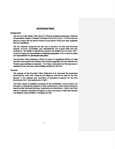 The Education Policy Statement (“Policy”) is based on established ERISA and state