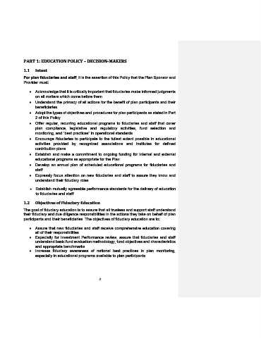 participants and their beneficiaries. The objectives of fiduciary education are to: