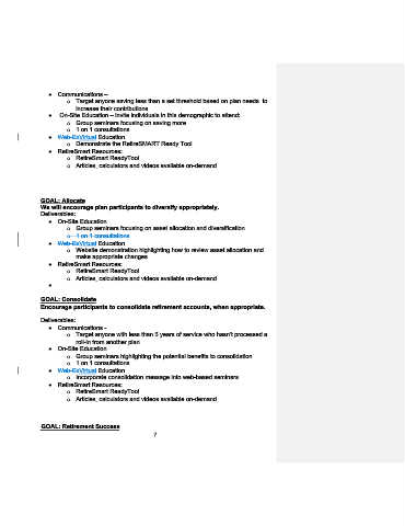 o Group seminars highlighting the potential benefits to consolidation