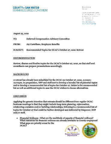SUBJECT: Recommended Topics for DCAC’s October 27, 2021 Retreat