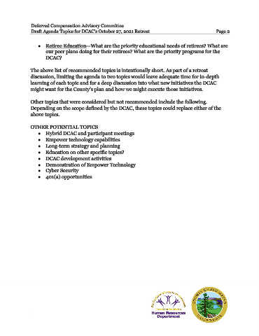 Draft Agenda Topics for DCAC’s October 27, 2021 Retreat Page 2