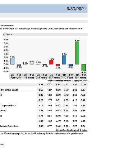 On the maturity side, bonds with 1 to 3 year maturities returned a positive 0.05% return for the quarter. Bonds with 5 to 7 year duration returned a positive 1.12%, while bonds with maturities of 10