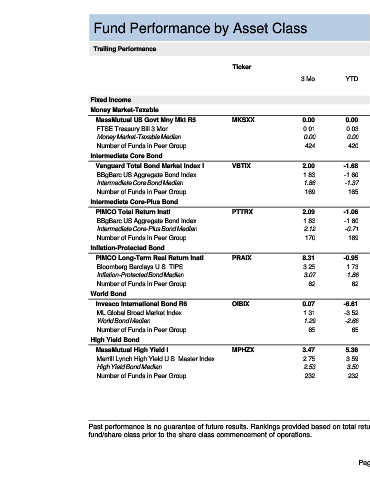 Fund Performance by Asset Class 6/30/2021