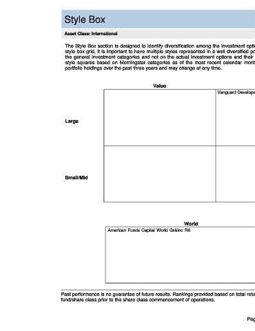 The Style Box section is designed to identify diversification among the investment options within a plan. Although it's not necessary to have exposure to every square in the