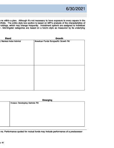 The Style Box section is designed to identify diversification among the investment options within a plan. Although it's not necessary to have exposure to every square in the