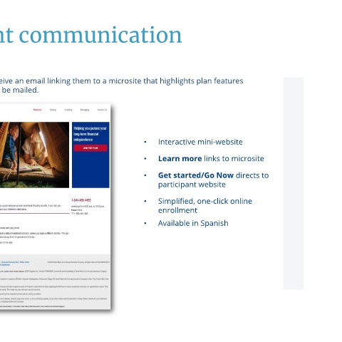 Once an employee becomes eligible to participate in the plan, they will receive an email linking them to a microsite that highlights plan features