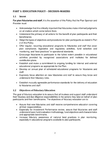 participants and their beneficiaries. The objectives of fiduciary education are to: